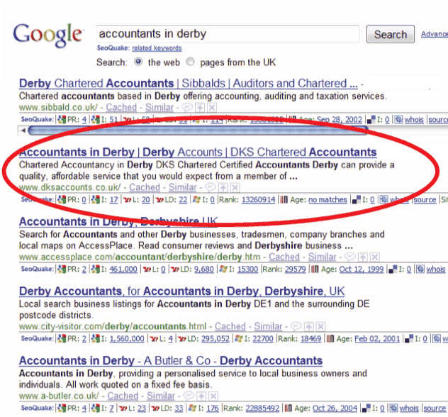 Keyword 1 = "Accountants in Derby" - Position 2 on Google